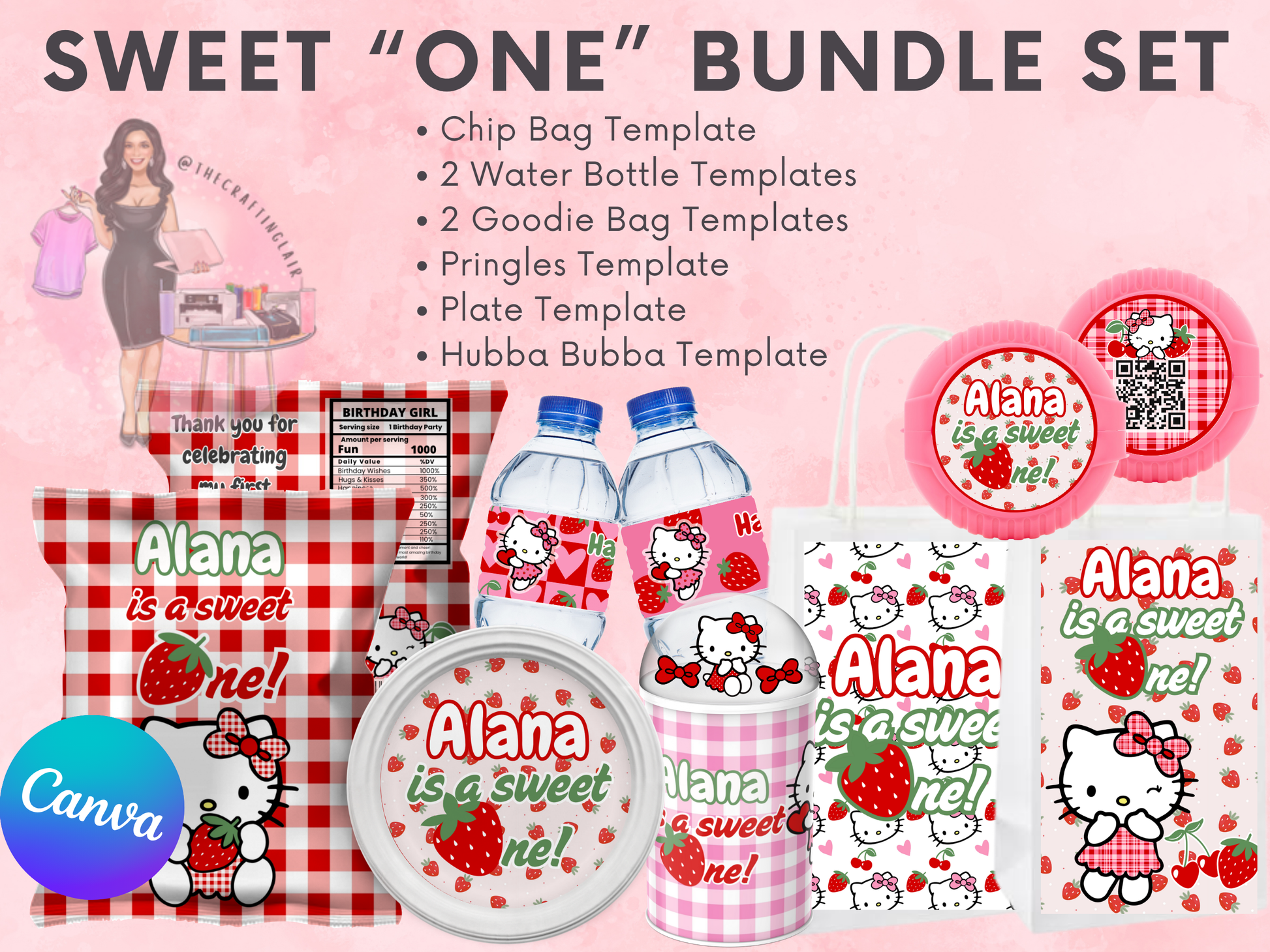 Sweet "One" Birthday Party Template Bundle - Canva Editable Template